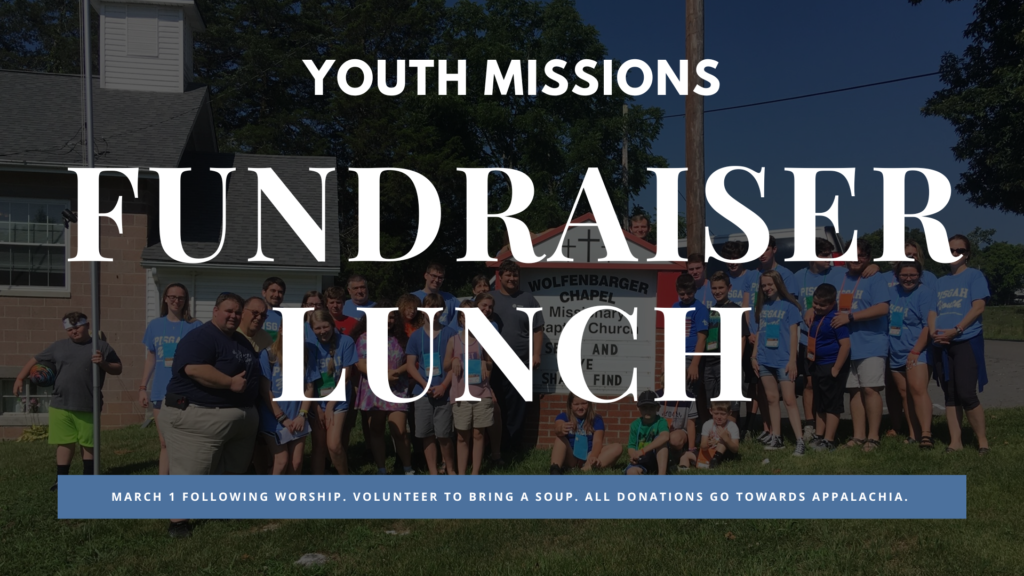 Our youth will be hosting a Soup and Sandwich Lunch following worship as a fundraiser for the Appalachia Missions Team. This meal will be a wonderful time of fellowship while supporting our students as they prepare to serve others through missions.